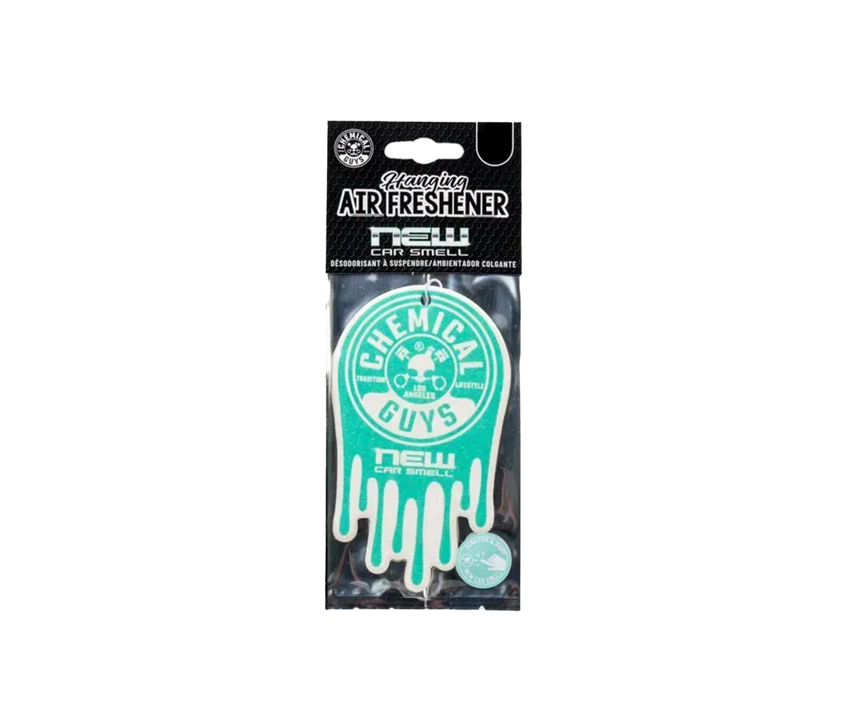 Chemical Guys New Car Scent — картонный подвесной ароматизатор для авто, компактная версия нейтрализатора запахов Chemical Guys New Car Smell. Это стильная подвеска с фирменным логотипом бренда, которая легко крепится на зеркало заднего вида и эффектно дополняет интерьер любого автомобиля. Благодаря особой технологии удерживания аромата обеспечивает равномерное высвобождение активных молекул на протяжении нескольких недель без снижения интенсивности.