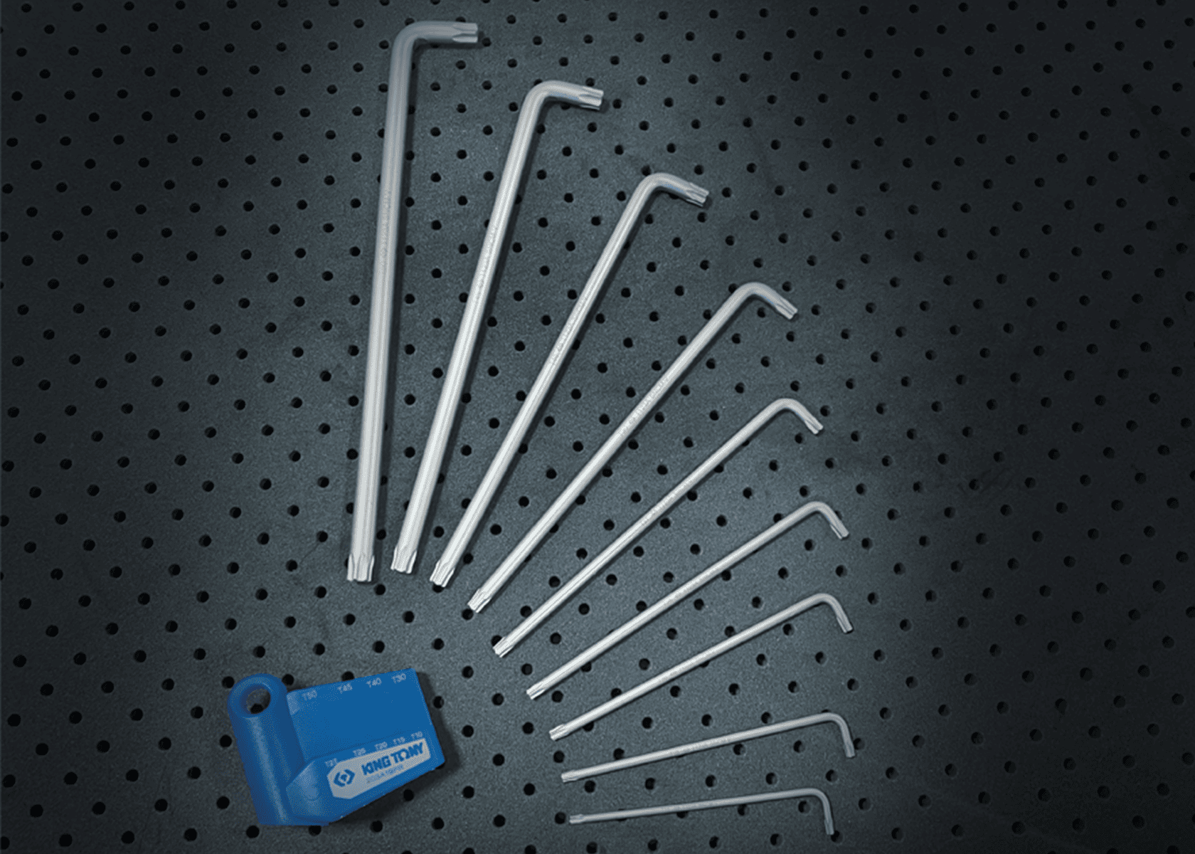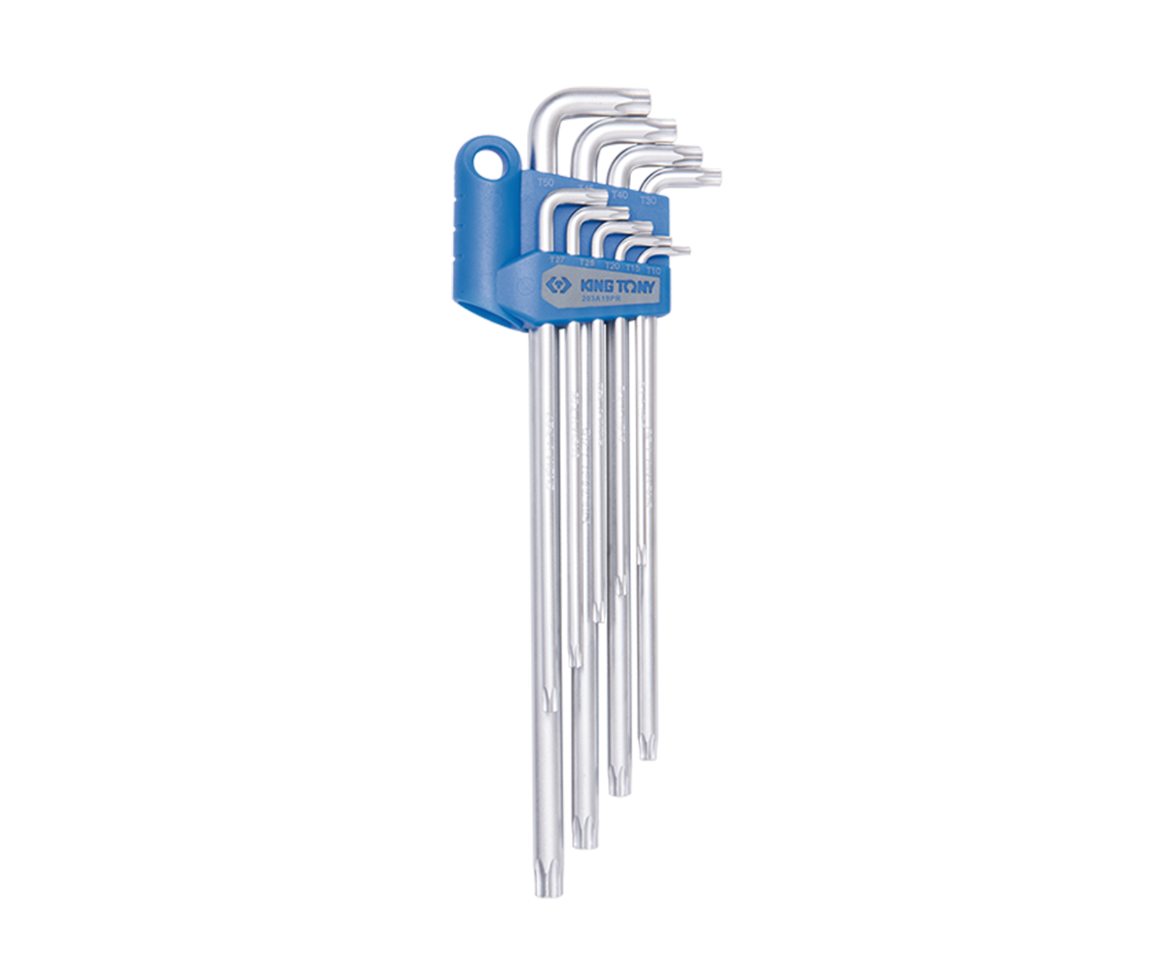King Tony Extra Long TORX Key Set – набор из девяти удлинённых Г-образных Torx-ключей. Рассчитан на интенсивную эксплуатацию в автосервисах, промышленности, на монтажных работах, где важны точность посадки, устойчивость к повышенным нагрузкам и долговечность.