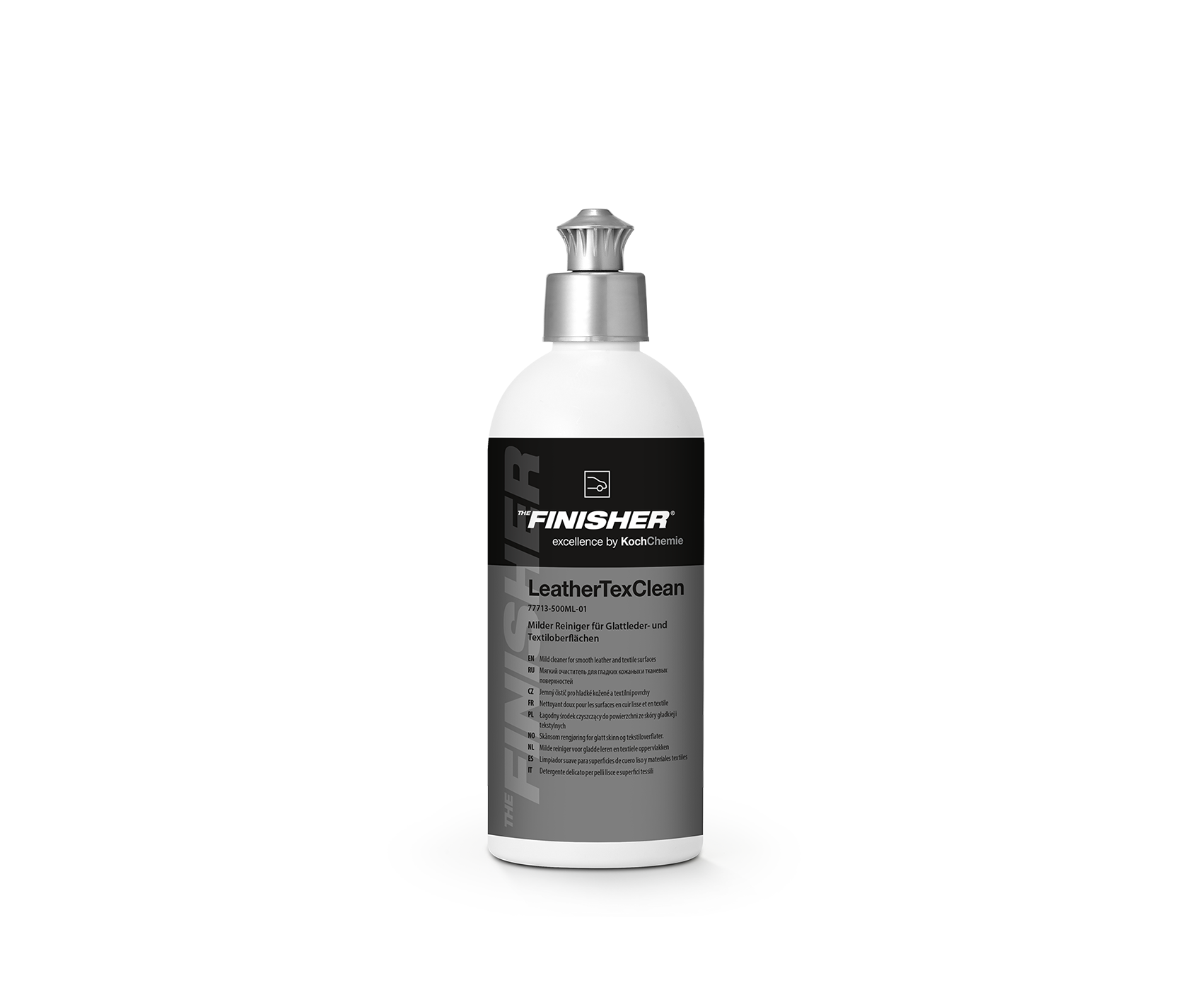 Koch-Chemie LeatherTexClean THE FINISHER – спрей-очиститель салона автомобиля. Применяется для мягкой и безопасной химчистки текстиля, кожи и алькантары. Эффективно устраняет типичные загрязнения салона: статическую грязь, пыль, отпечатки пальцев, остатки пота, себума, пятна от еды и напитков.