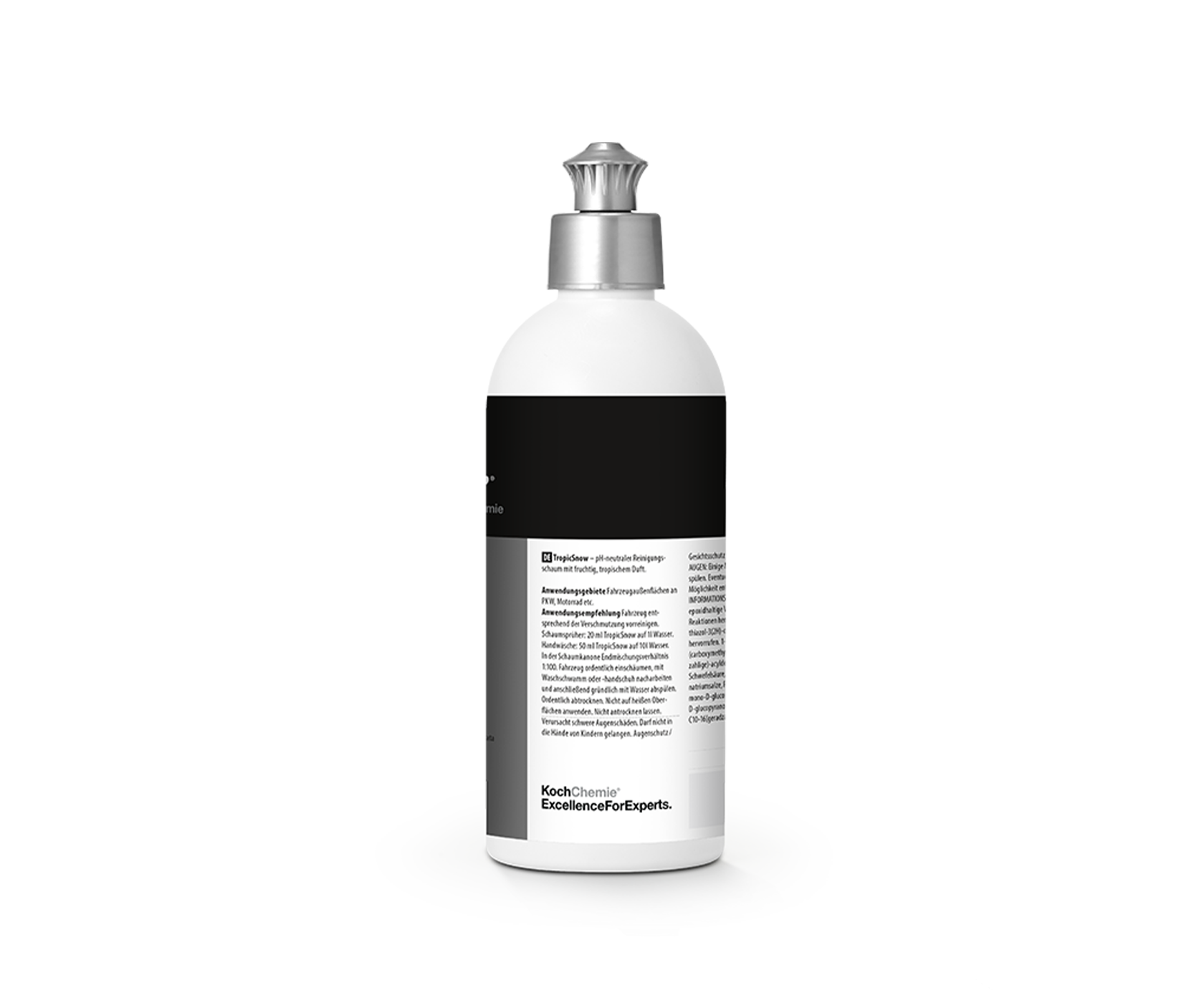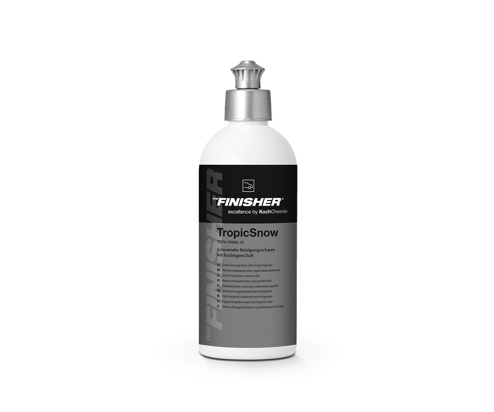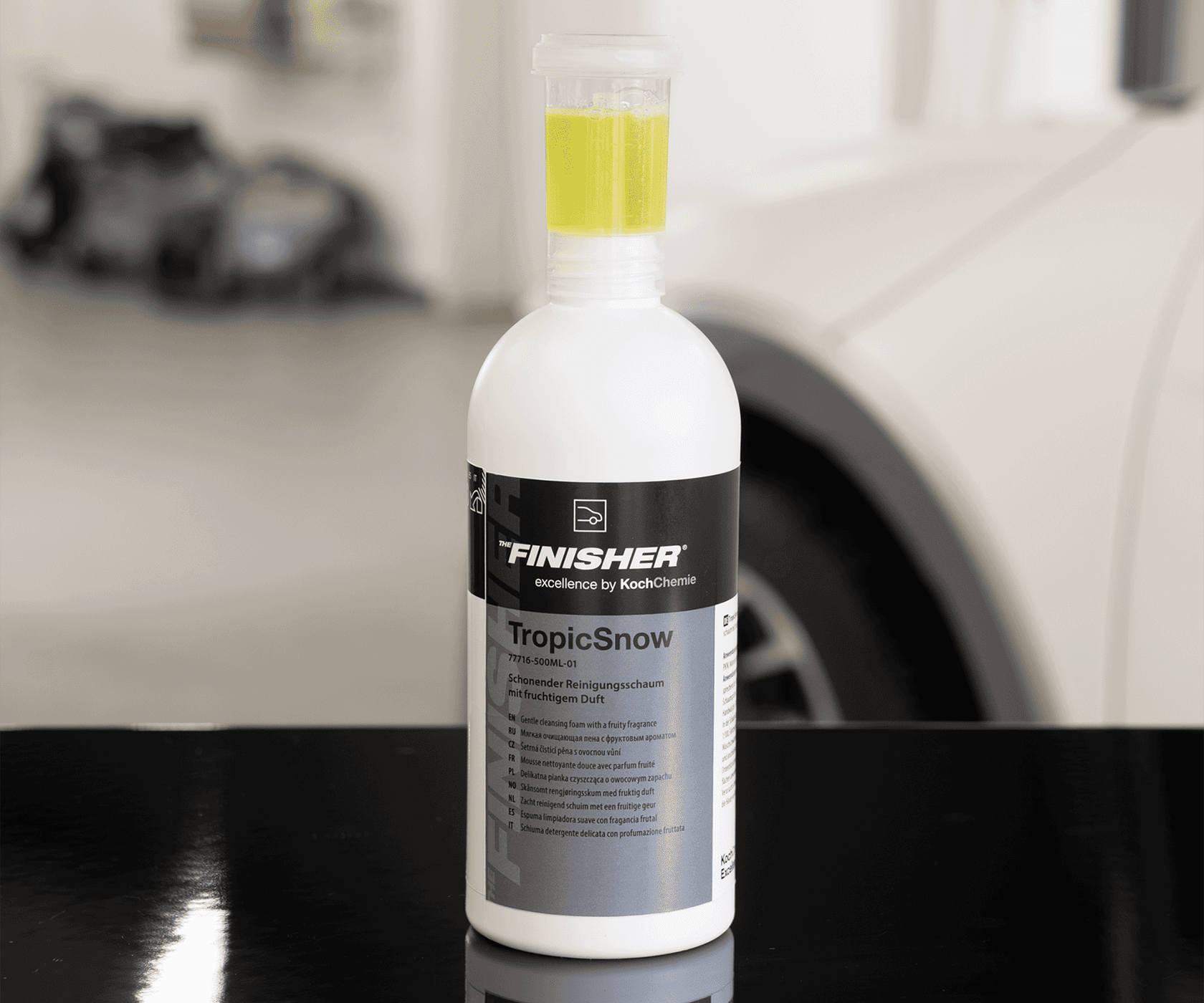 Koch-Chemie TropicSnow THE FINISHER – шампунь для ручной мойки, предназначенный для эффективного удаления статических загрязнений и дорожной грязи с лакокрасочного покрытия. Формирует густую и плотную пену, обладает приятным ароматом тропических фруктов. Благодаря нейтральному pH подходит для регулярной мойки автомобилей с нанесёнными кварцевыми покрытиями, силантами и восками.