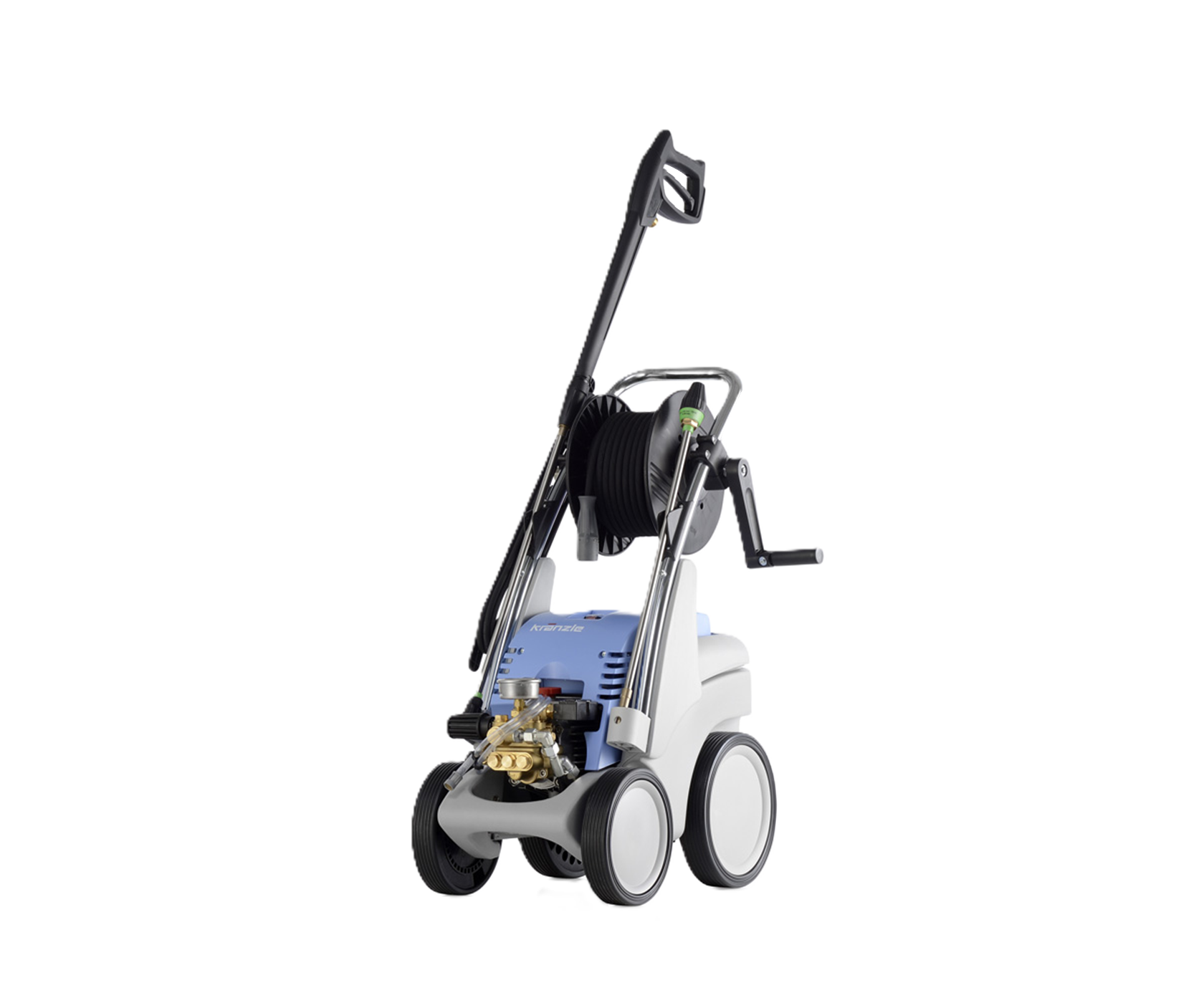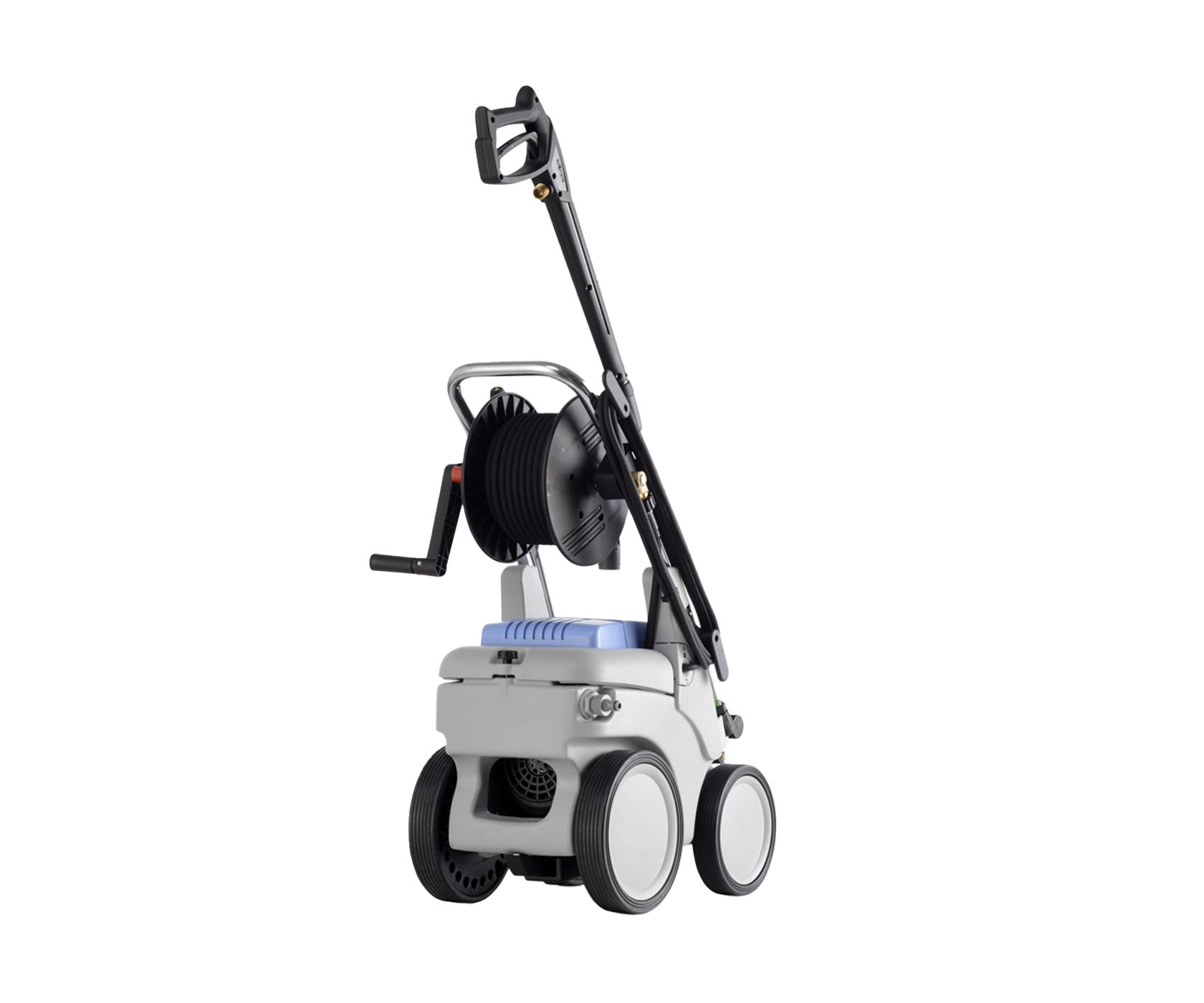 Аппарат оборудован встроенным накопительным баком для воды на семь литров, которые предотвращает повреждение насоса при остановке водоснабжения. Четырехполюсной низкооборотистый двигатель рассчитан на продолжительную работу и оснащен защитой от перегрева. Головка насоса изготовлена из кованной латуни, а насосный плунжер покрыт керамическим напылением, что также увеличивает ресурс аппарата. Большие устойчивые колеса облегчают перемещение и транспортировку мойки, а стояночный тормоз исключает самопроизвольное движение.