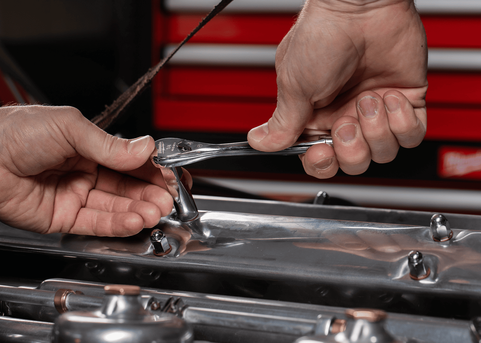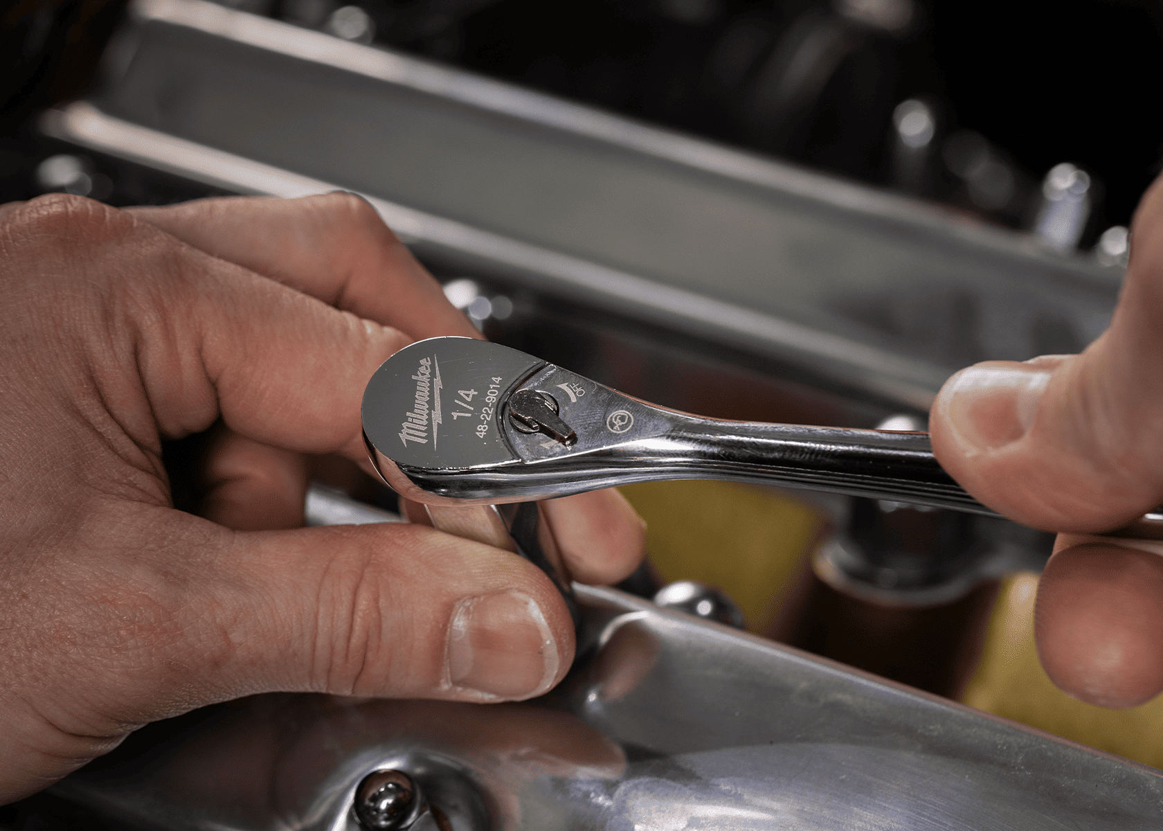 Milwaukee ¼" Drive Ratchet – трещотка с квадратом ¼ дюйма и длиной 152 мм. Оснащена храповым механизмом на 90 зубьев, что обеспечивает малый рабочий угол поворота в 4°. Он обеспечивает плавную работу, чёткий реверс и устойчивость к нагрузкам. Трещотка совместима с большим количеством бит, а благодаря компактному размеру позволяет эффективно работать в стеснённых условиях, где пространство для хода инструмента ограничено.