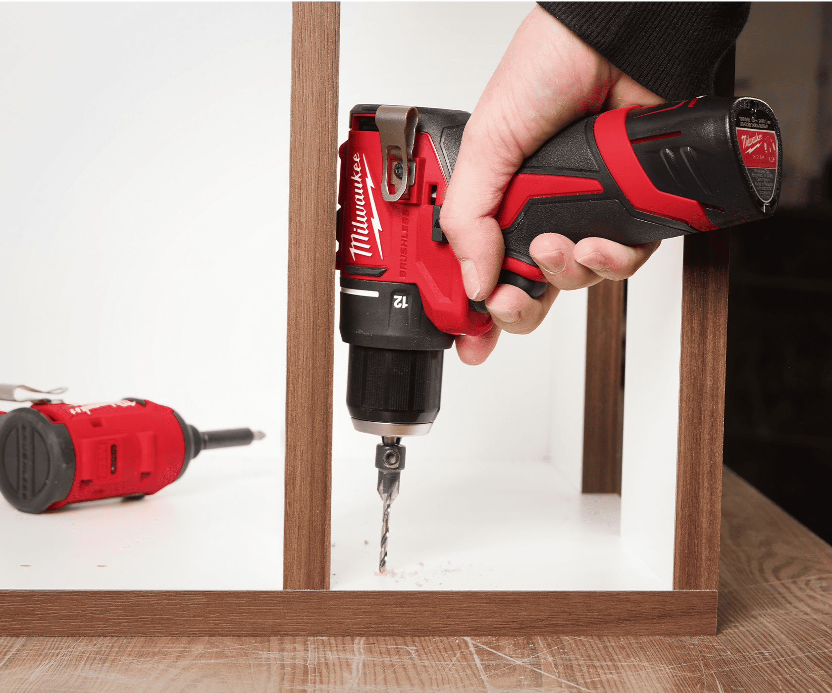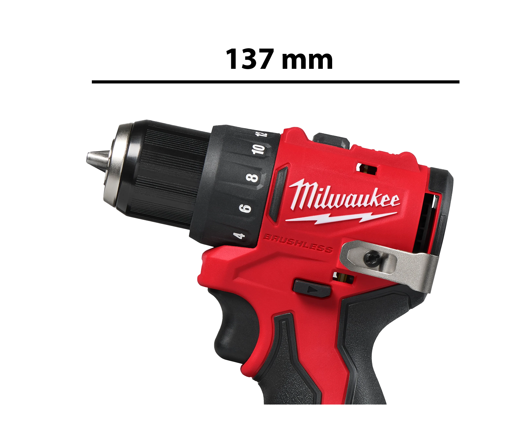 Milwaukee M12 BLDDRC-202C – компактный инструмент 2 в 1 (дрель и шуруповёрт) длиной 137 мм, крутящим моментом 40 Нм, безударным 2-х скоростным бесщёточным двигателем (450…1550 об/мин), и механической 13-ступенчастой муфтой. Он незаменим при работе в ограниченном пространстве и там, где нет доступа к электросети.