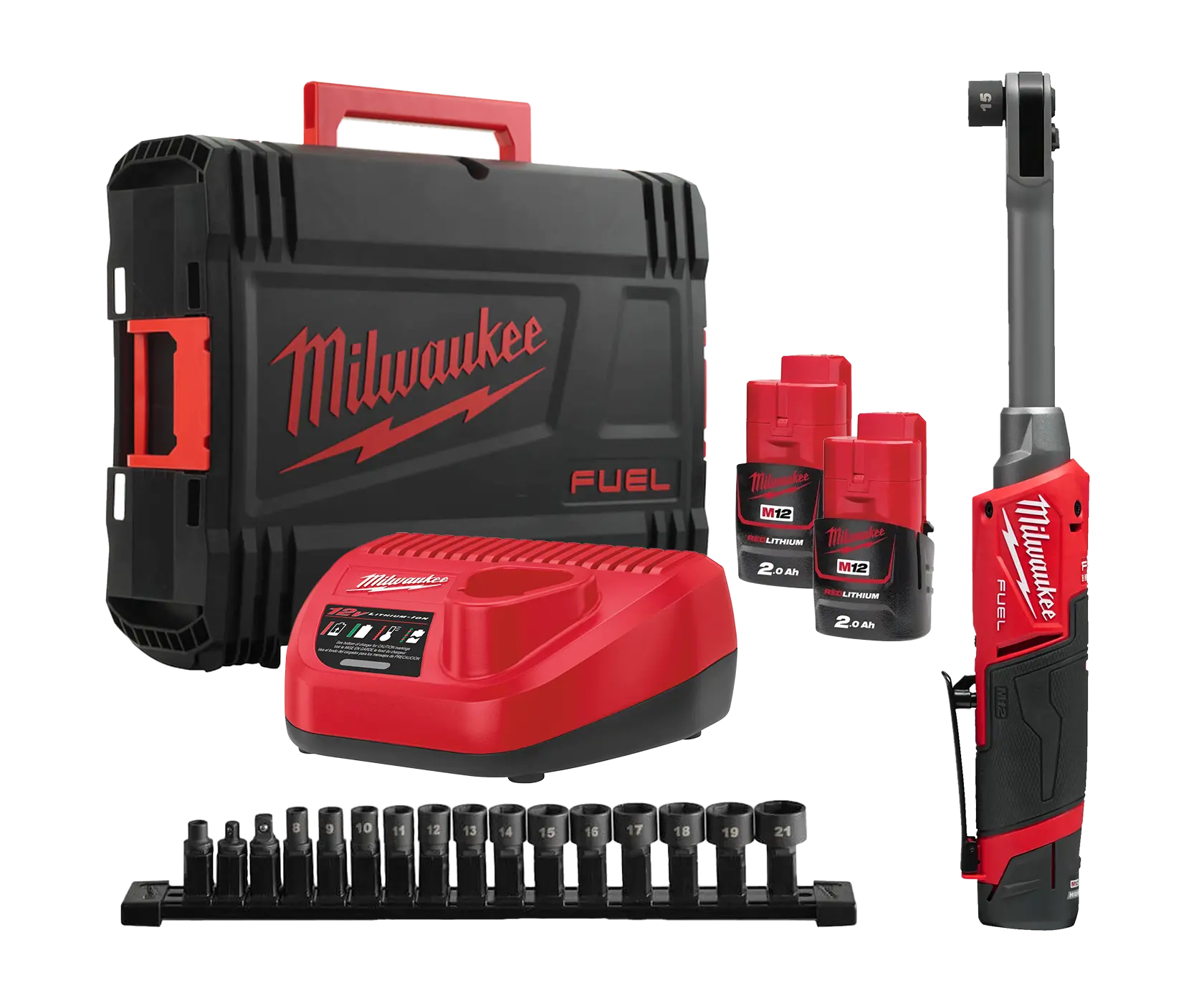 - 1 × аккумуляторный угловой гайковёрт-трещотка Milwaukee M12 FPTR-202X Pass