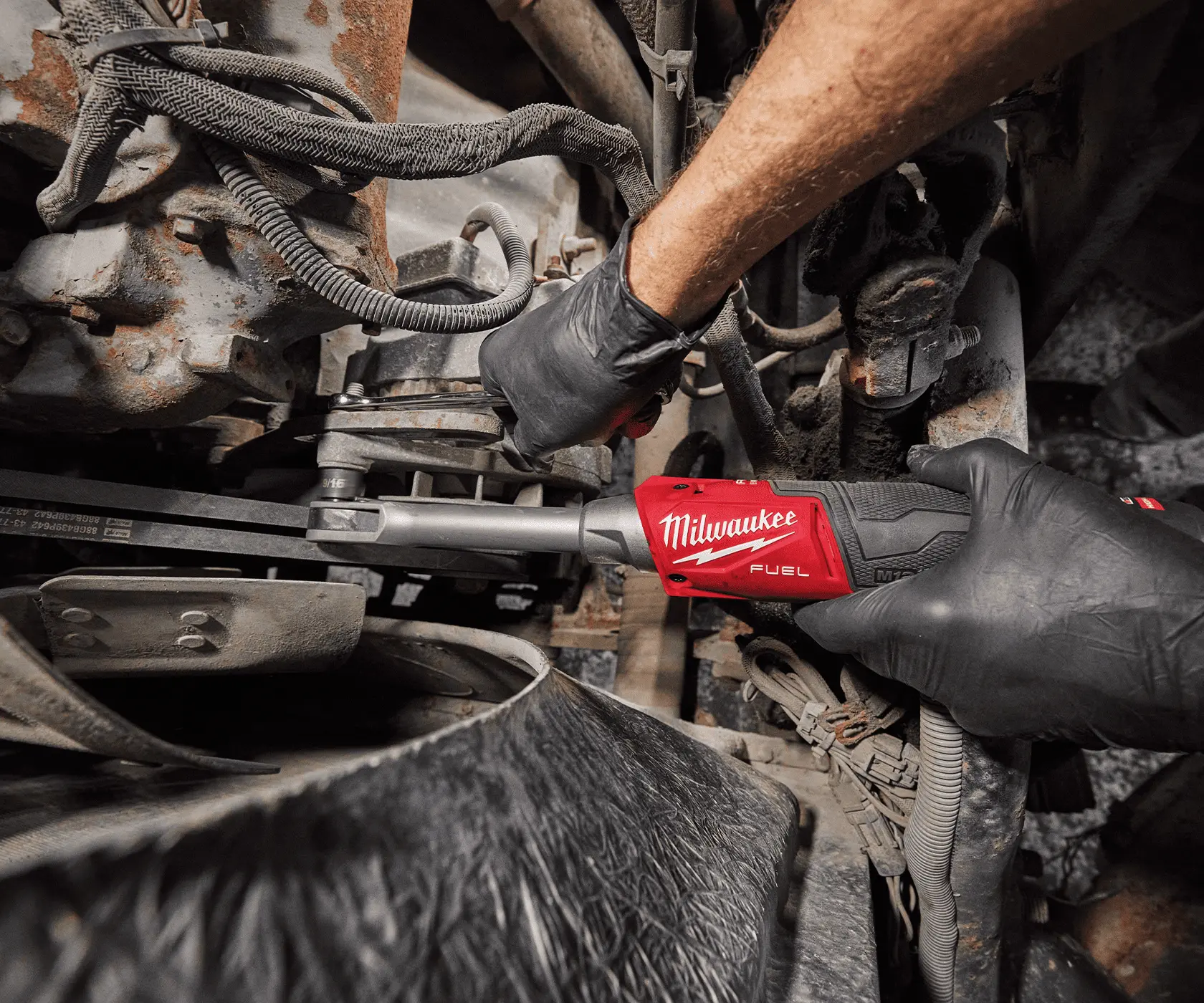 Milwaukee M12 FPTR-202X PASS – аккумуляторный угловой гайковёрт-трещотка с максимальным крутящим моментом 81 Нм. Этот набор – обновлённая версия снятого с производства предыдущего поколения FPTR-202X. Благодаря бесщёточному мотору с технологией POWERSTATE™ с повышенным ресурсом, инструмент обеспечивает частоту вращения до 350 об/мин. Комбинация максимального крутящего момента и максимальных оборотов позволяет снять упрямые крепежи, выполняя большие объёмы работ быстрее. При необходимости может использоваться как классический ручной инструмент с выключенным мотором.
