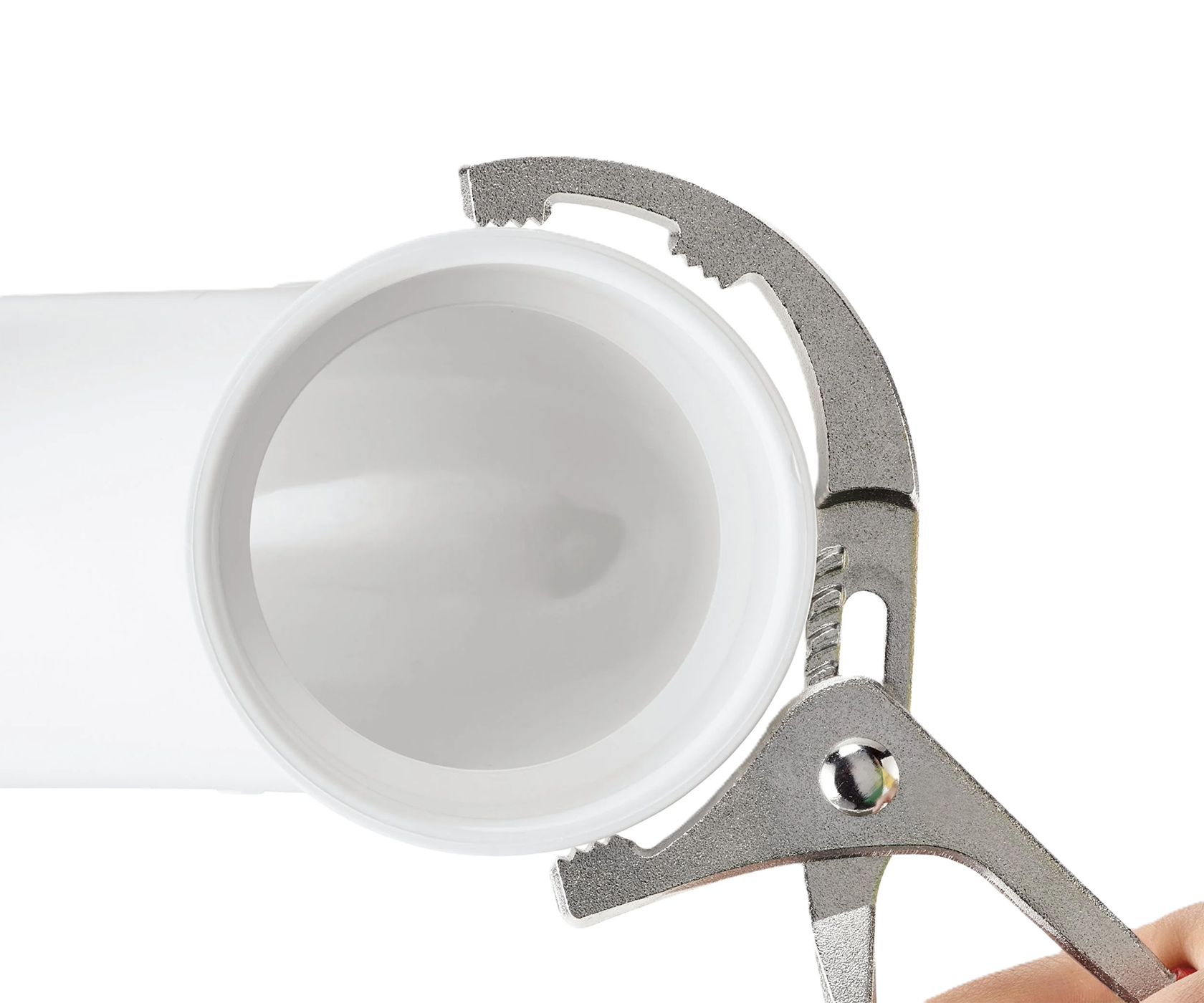 Длина инструмента составляет 229 мм, что обеспечивает достаточный рычаг для срыва прикипевших фильтров. Профиль рабочих губок клещей обеспечивает плотный обхват без избыточной деформации фиксируемого объекта. Это особенно важно при обслуживании современных картриджных и корпусных систем фильтрации, а также деликатных ПВХ-труб.