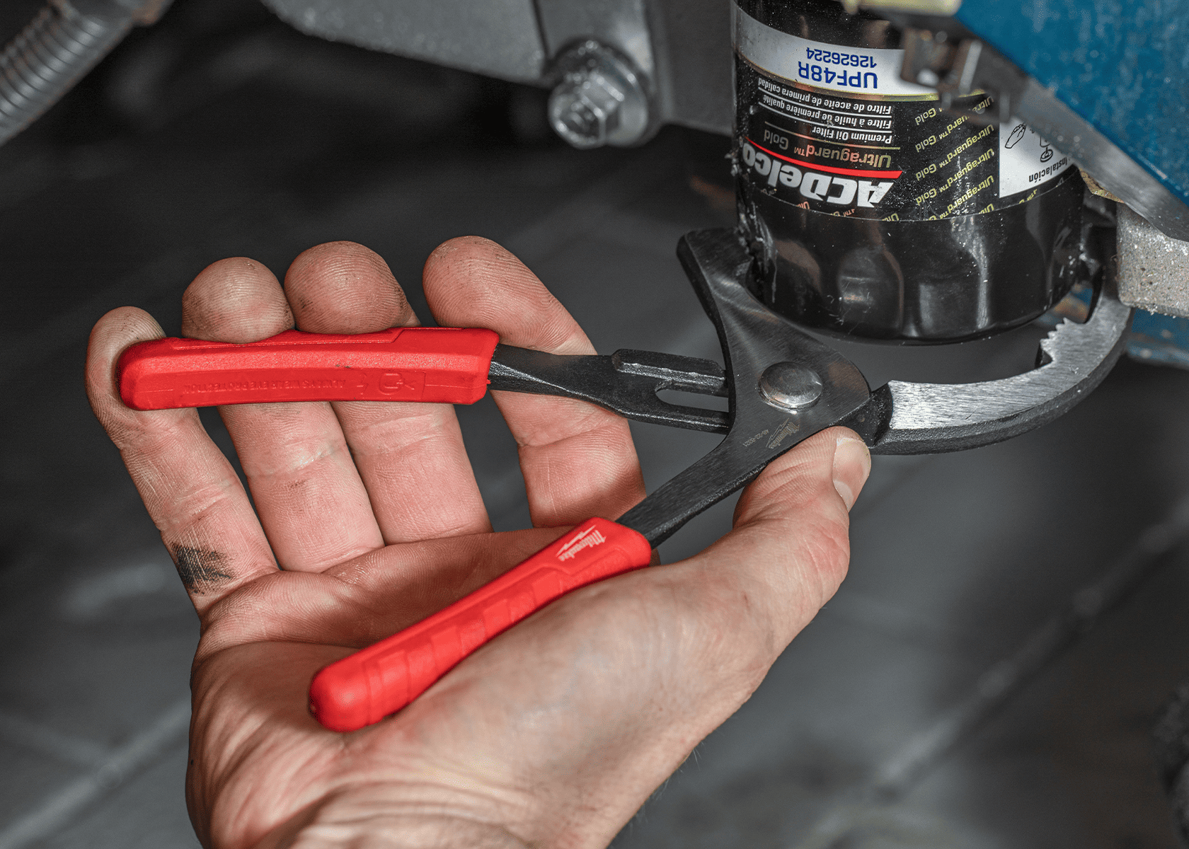 Milwaukee PVC / Oil Filter Pliers – клещи для демонтажа масляных фильтров и пластиковых труб без риска повреждения корпуса. Разработаны для профессионального использования в автосервисе, строительстве, сантехнике, рассчитаны на работу с фильтрами и трубами диаметром до 89 мм.