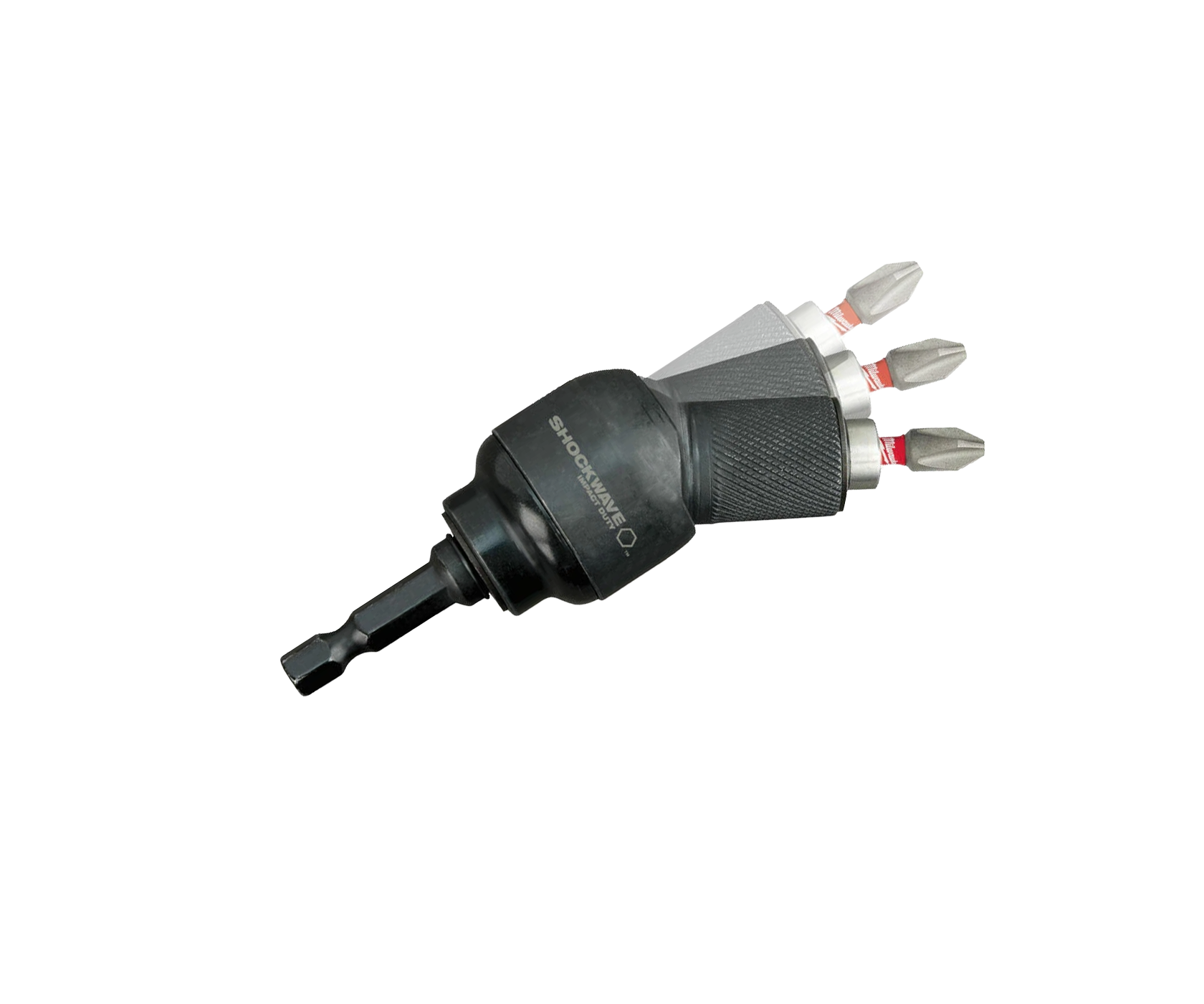 Milwaukee SHOCKWAVE™ Knuckle Offset Attachment – угловая насадка с набором бит, созданная для выполнения крепёжных работ в ограниченных и труднодоступных зонах. Она ощутимо расширяет возможности стандартного шуруповёрта или дрели, позволяя быстро и надёжно завинчивать и сверлить под нестандартными углами, а также при больших нагрузках.