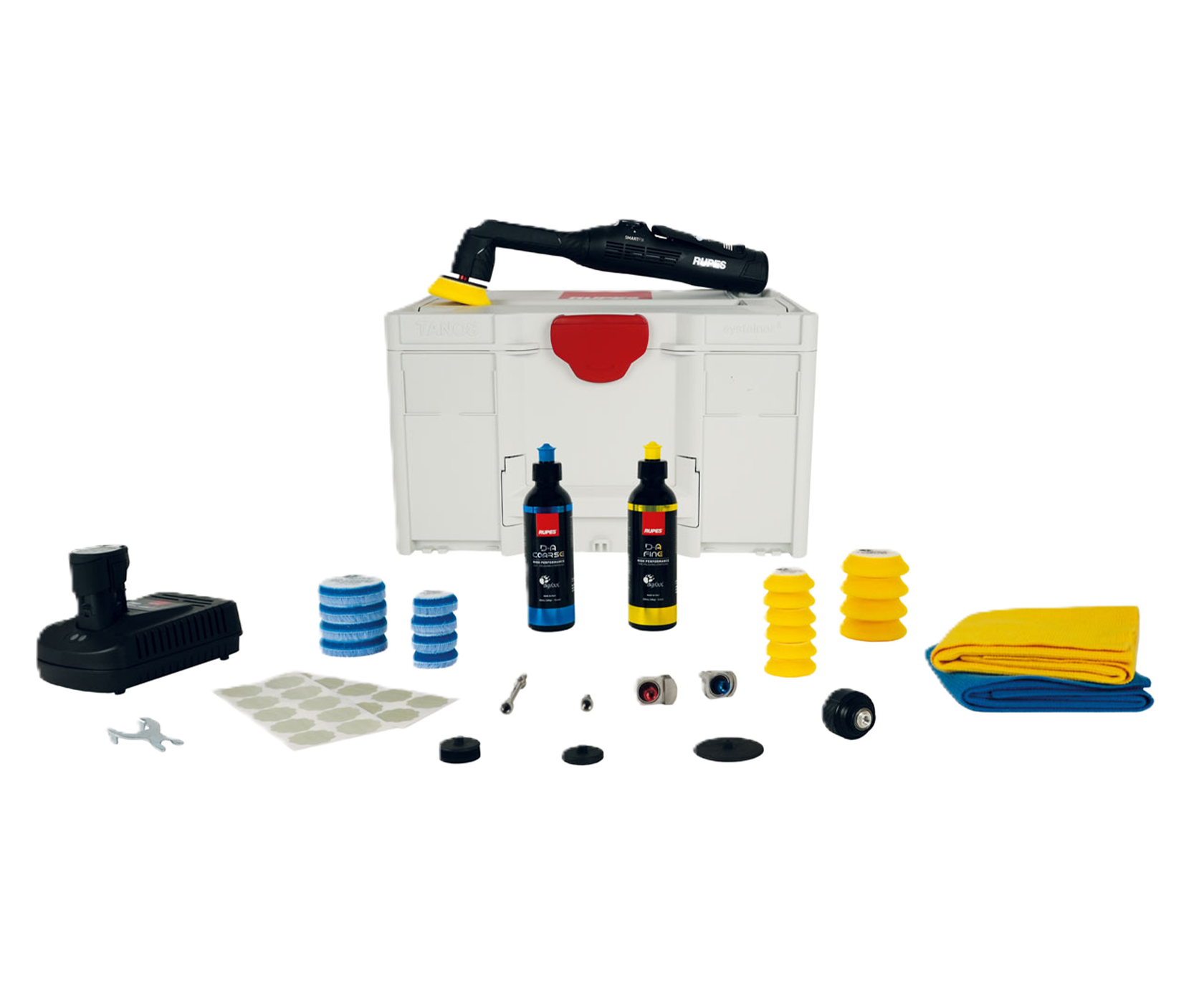 Комплектация LUX – полноценная рабочая станция, которая прямо из коробки даёт возможность использовать все функции полировальной машины. В наборе – сменные эксцентрики, насадка роторного вращения, удлинитель, полировальные пасты, полировальные и шлифовальные круги. Все составляющие комплектации компактно размещаются в фирменном пластиковом контейнере Stackable Box System Case III с замочной системой T-Loc.