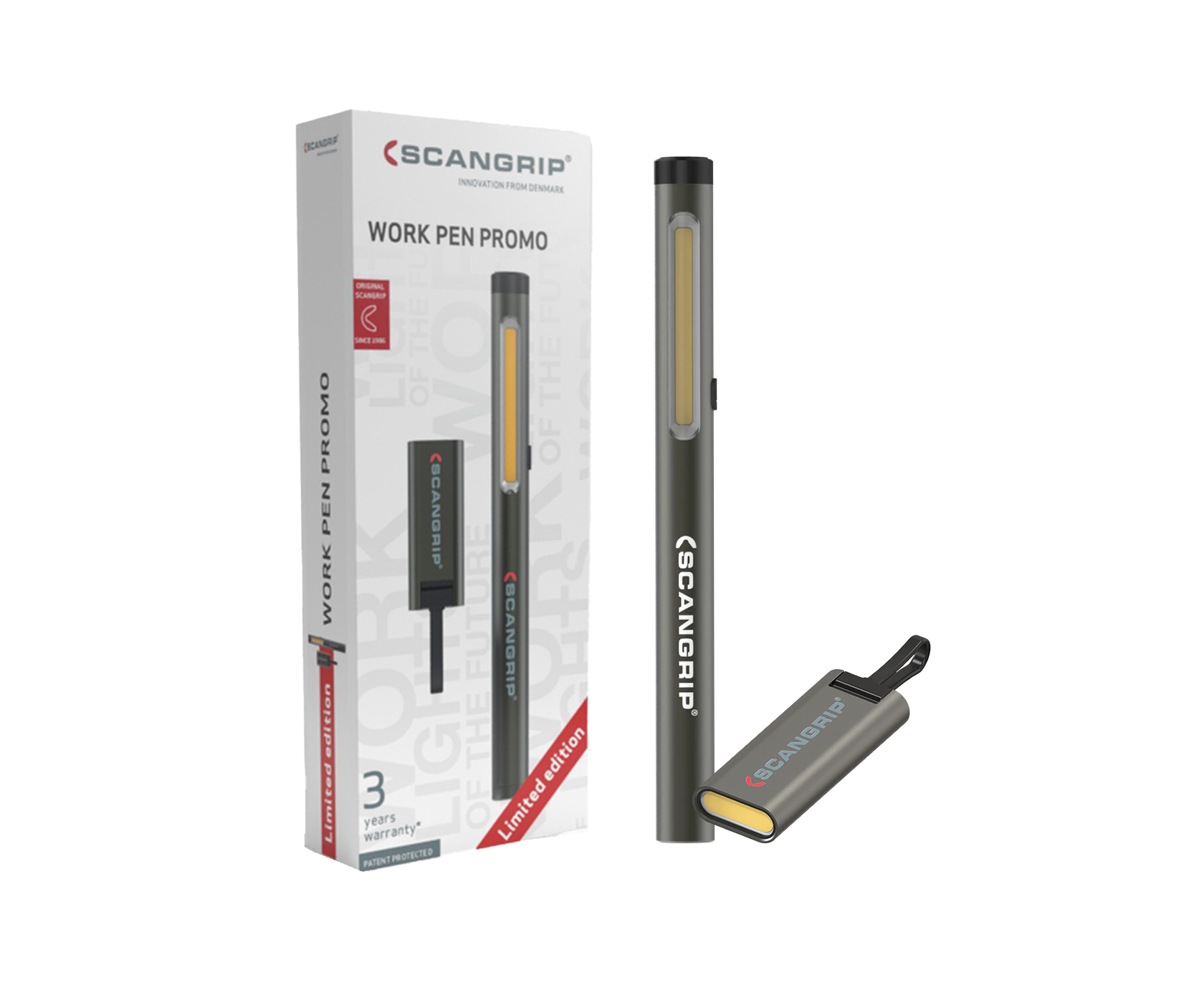 Scangrip Work Pen 200 R/Flash Micro R Promo Pack – лимитированный промо-набор из двух ручных фонарей: Scangrip Work Pen 200R в формате ручки для инспекции и детейлинга, а также Flash Micro R в виде брелка.