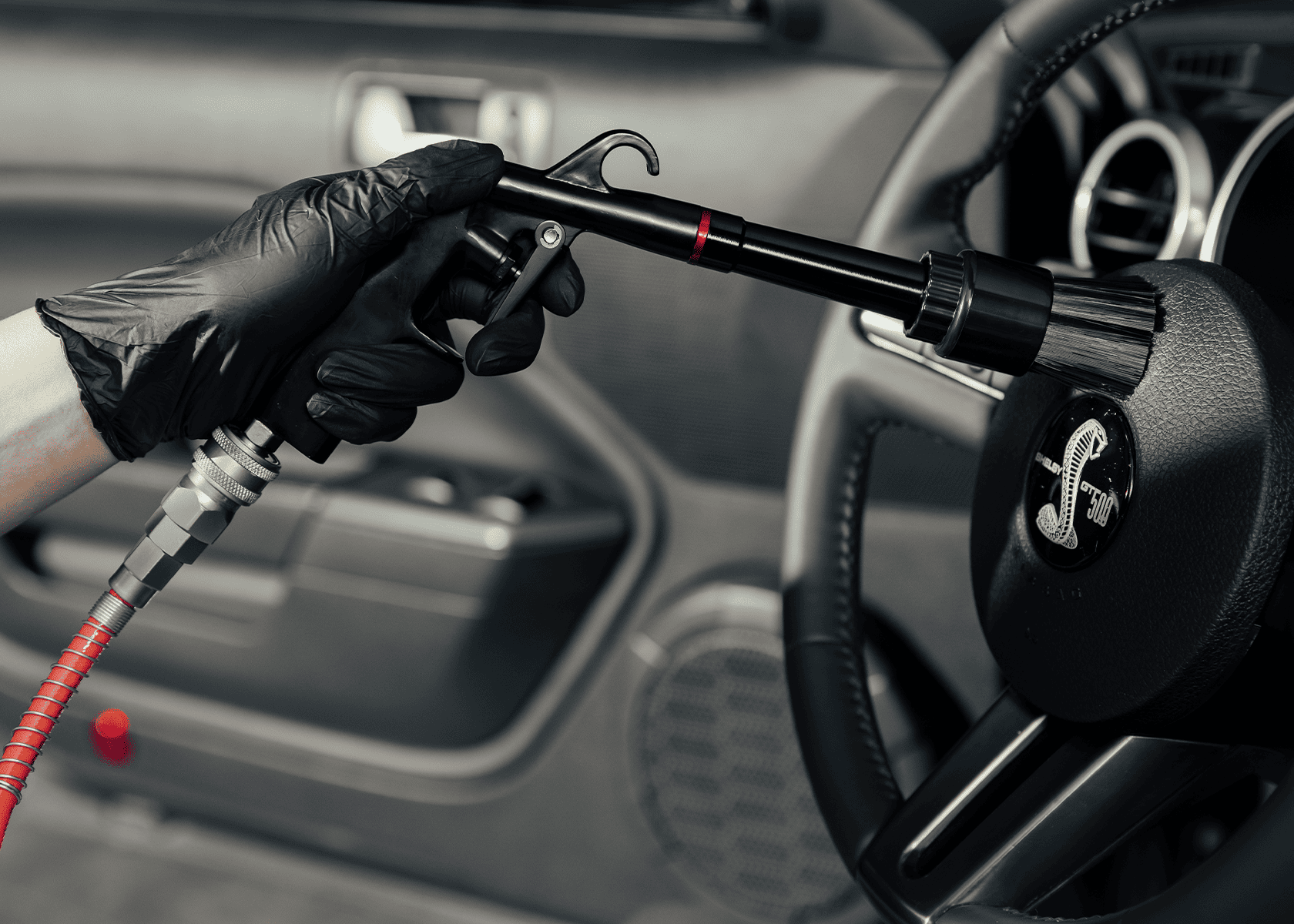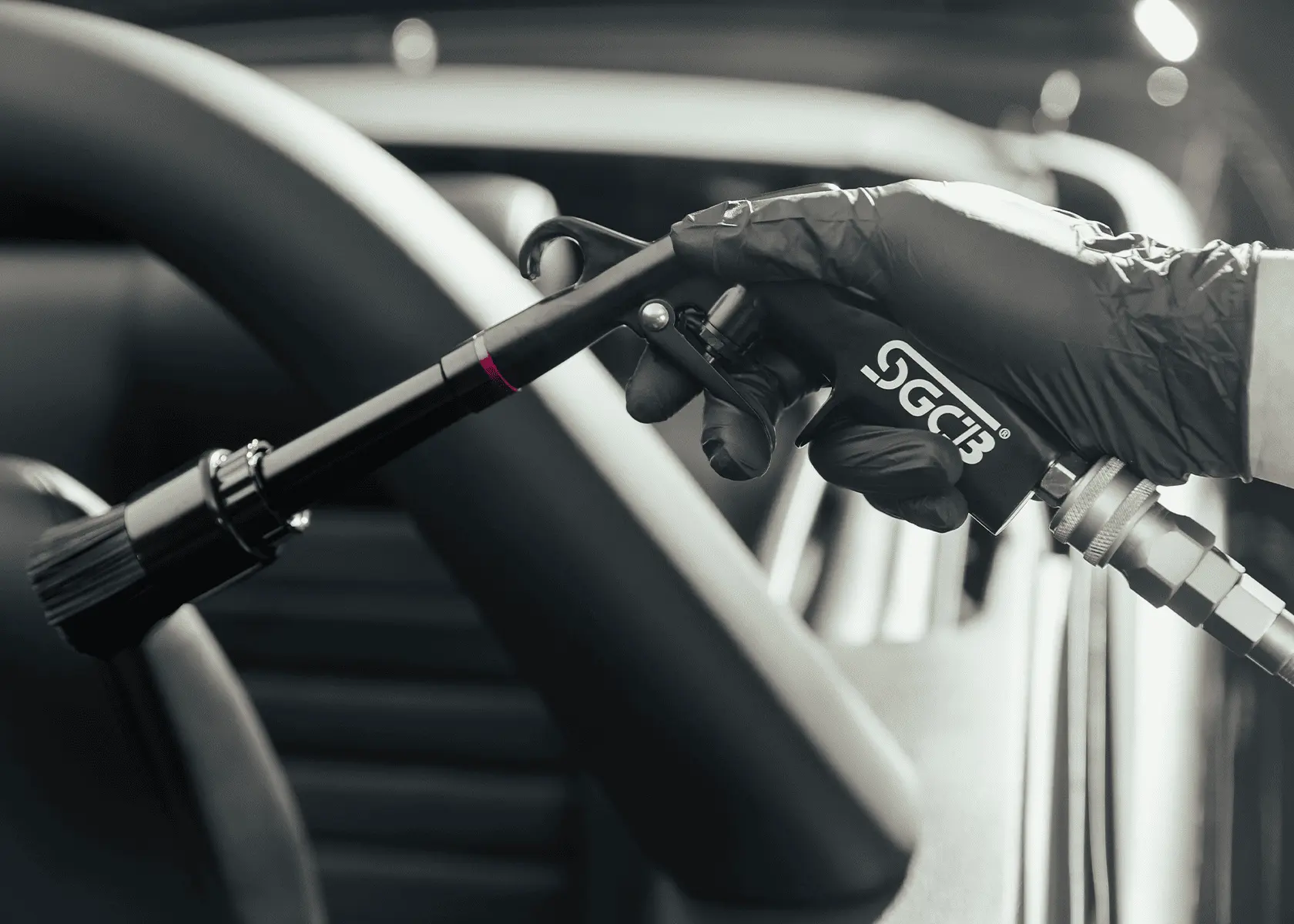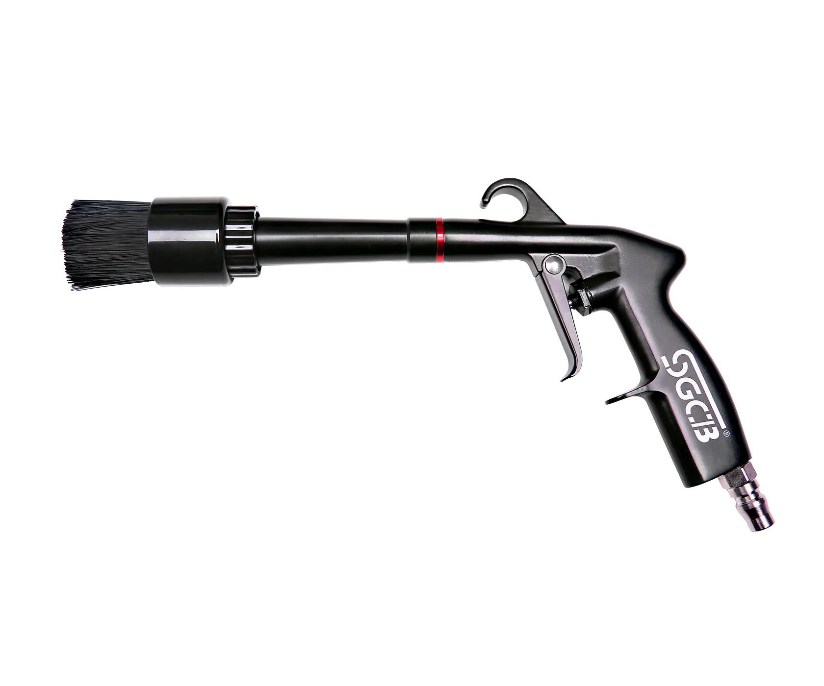 SGCB Interior Cleaning Gun – пистолет со щёткой с эффектом торнадо. Подсоединяется к воздушному компрессору и под высоким давлением создаёт завихрение (эффект торнадо), которое буквально выбивает пыль и грязь с поверхностей.