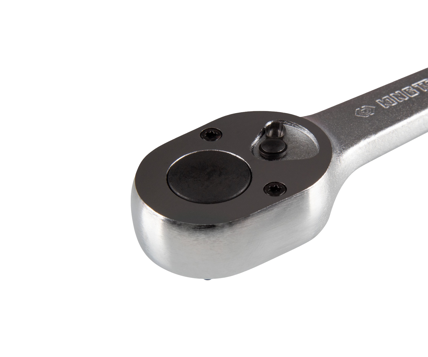 Суцільнометалева рукоятка тріскачки доповнена накаткою, завдяки якій інструмент впевнено лежить у руці навіть при роботі в захисних рукавицях або в умовах забруднення технічними рідинами. Відсутність пластикових або гумових елементів підвищує довговічність рукоятки тріскачки, роблячи її стійкою до дії масел, розчинників та більшості паливно-мастильних матеріалів.