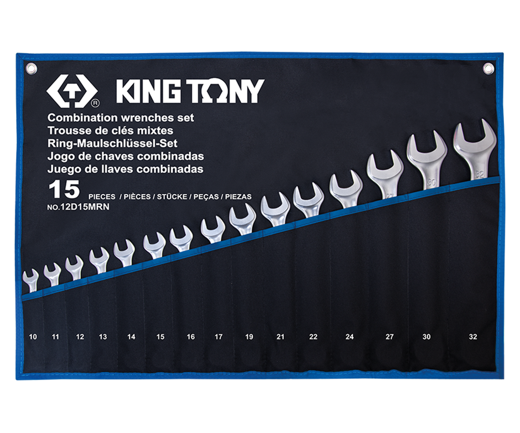 King Tony Combination Wrench Set 15 pcs – набір із п'ятнадцяти ріжково-накидних ключів. Збалансований за розмірами та функціональністю, він поєднує надійність, довговічність та комфорт застосування. Розрахований на інтенсивну експлуатацію в умовах автосервісу, СТО та інших галузях, де є необхідність монтажних робіт.