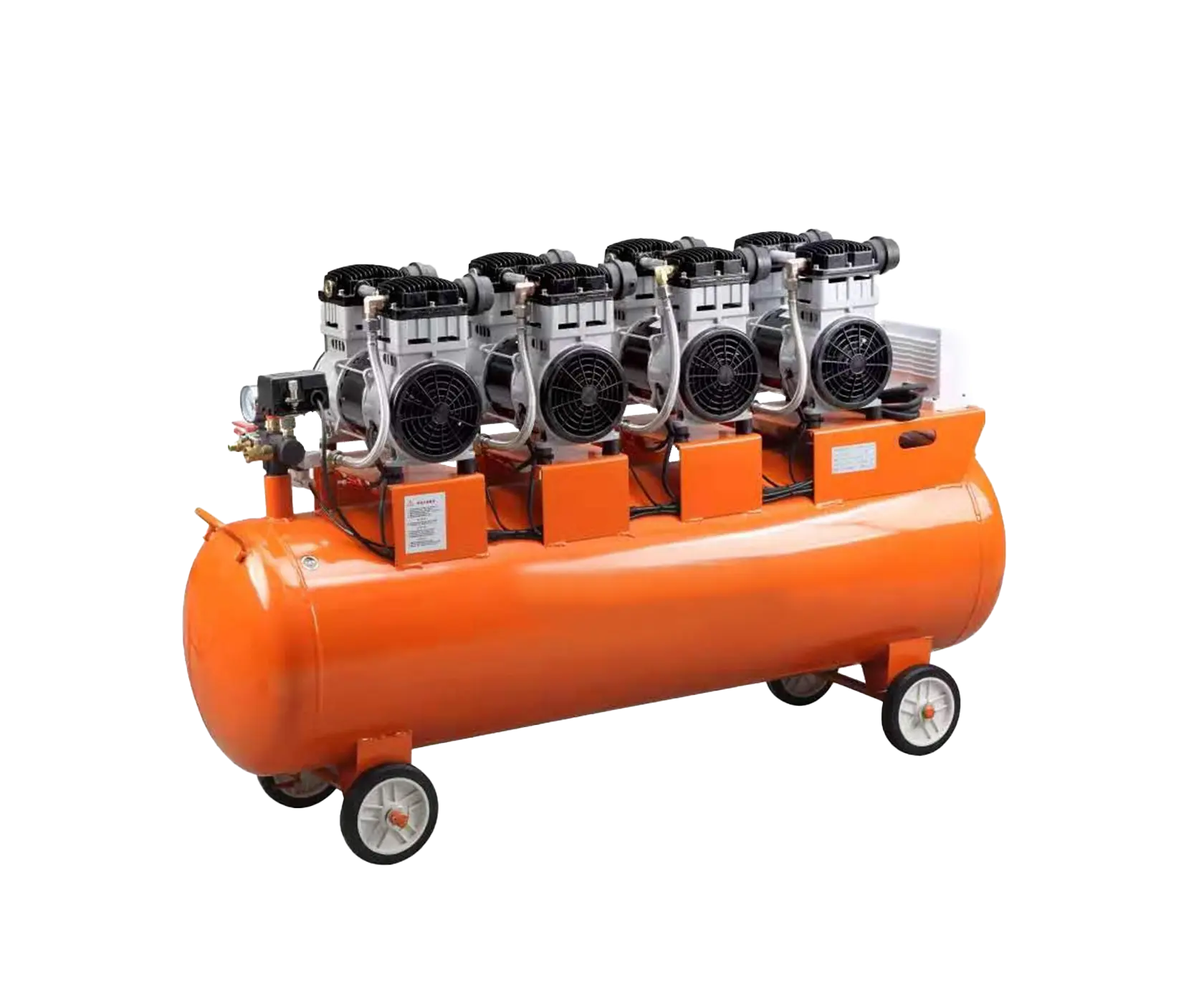 SGCB Mute Air Compressor — чотирьохциліндровий безмасляний компресор, призначений для приводу пневматичних машин та механізмів. Завдяки потужності в 6 кВт, баку ресивера об'ємом 230 літрів, продуктивності 1040 літрів за хвилину він незамінний у цехах та виробництві з інтенсивними тривалими навантаженнями (фарбувальних, піскоструминних цехах, великих автомайстернях, шиномонтажах тощо).