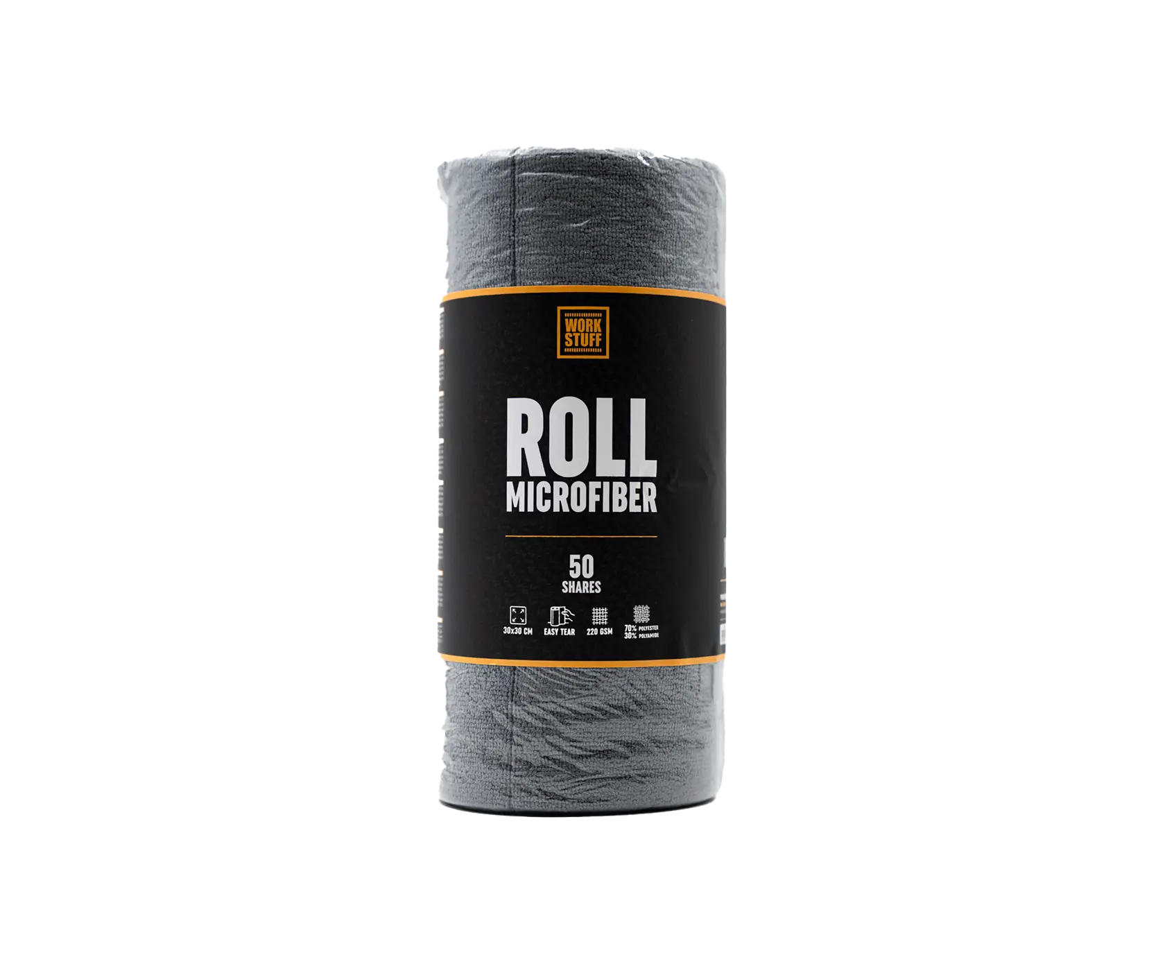 Work Stuff Roll Microfiber – рулон із 50 відривних мікрофібрових серветок сірого кольору розміром 30×30 см універсального застосування. Щільність тканини 220 г/м² забезпечує баланс між абсорбуючими властивостями, м'якістю та контролем при роботі з різними поверхнями. Серветки підходять для прибирання в салоні, протирання елементів екстер'єру, а також для розполірування м'яких та твердих восків, силантів та аналогічних захисних покриттів.