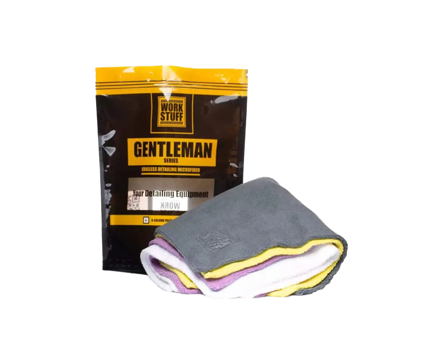 Work Stuff Gentleman Basic 4-pack — набор из четырёх разноцветных микрофибр размерами 40 на 40 см и плотностью ткани 350 г/м². Лазерное кромкование краёв, две стороны — с длинным и коротким ворсом — позволяют использовать микрофибры для удаления полировальной пасты с кузова, располировки защитных покрытий и для работы в салоне (с кожаными и пластиковыми элементами).