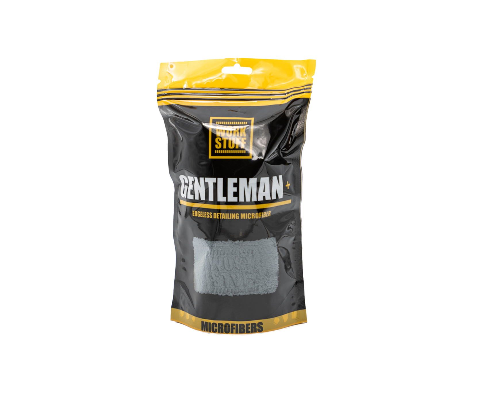 Work Stuff GENTLEMAN+ — мягкая двухстороння микрофибра с плотностью ткани 600 г/м² и размерами 40 × 40 см. Может использоваться для нанесения и располировки защитных покрытий (в том числе и кварцевых), квик-детейлеров, силантов, удаления полировальной пасты с кузова. Она подходит для работы в салоне как с кожаными, так текстильными и пластиковыми элементами интерьера. А благодаря сверхплотному волокну идеально подходит для точечного высушивания кузова после мойки.