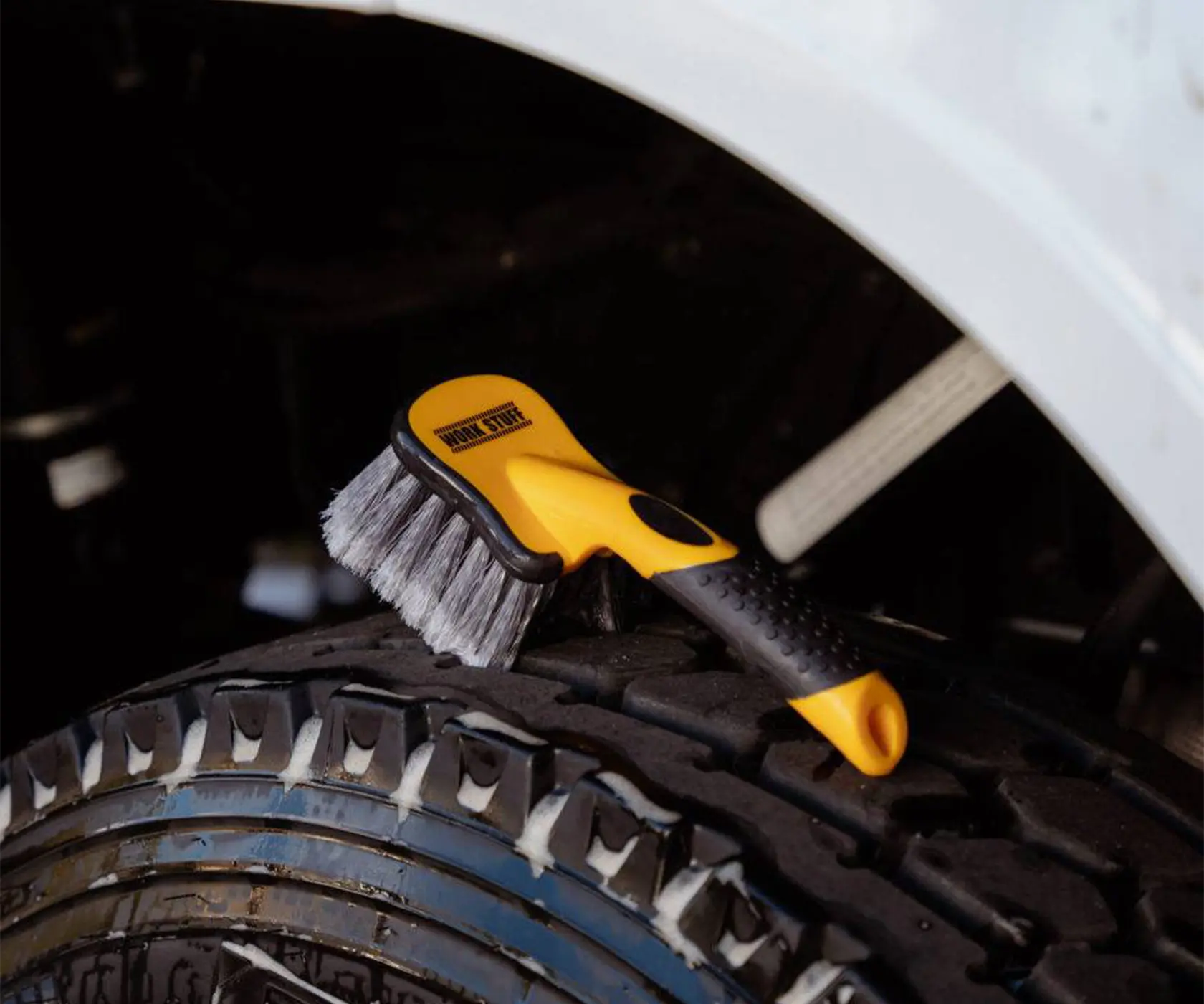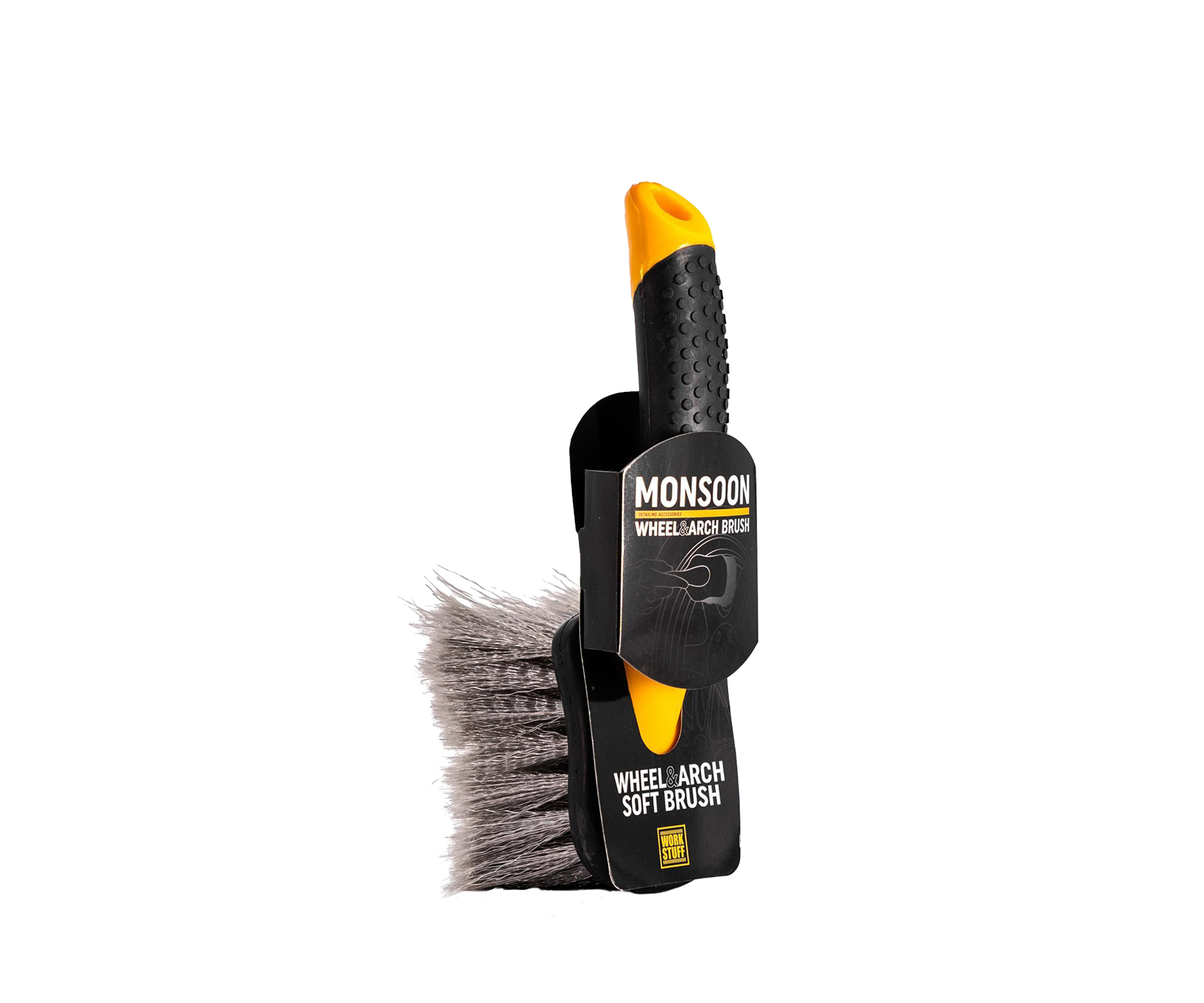Work Stuff Monsoon Wheel Brush – профессиональная щётка для эффективной очистки колёсных дисков, резины, арок и подкапотного пространства. Компактный размер и продуманная форма позволяют легко работать даже в труднодоступных местах, обеспечивая глубокую очистку поверхностей без риска их повреждения.